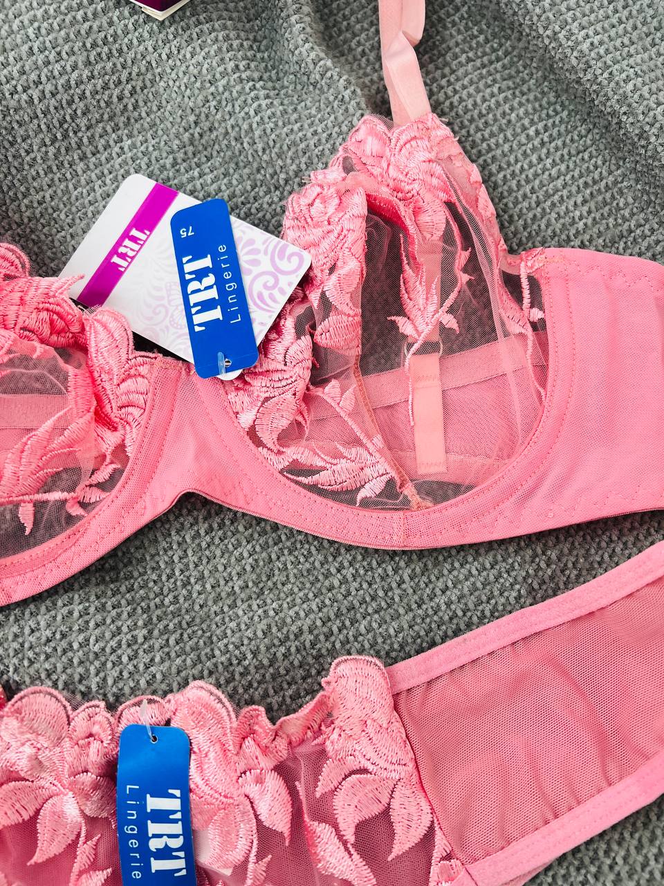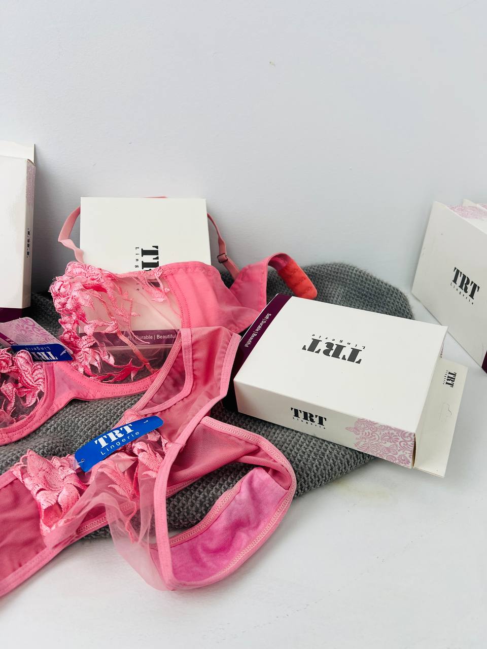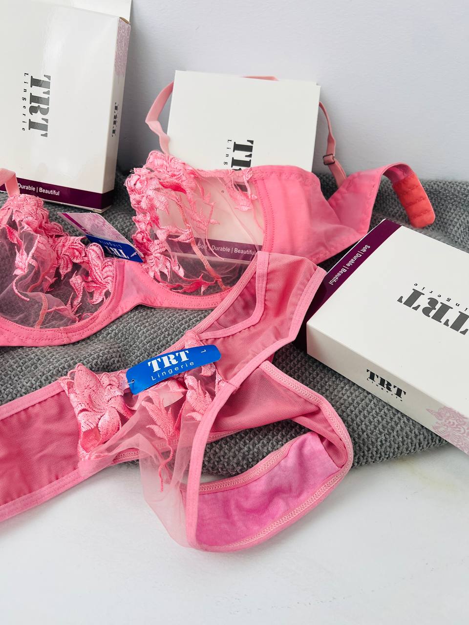 ست اسپنتا TRT – توری صورتی با گل‌دوزی هنری از اساطیر