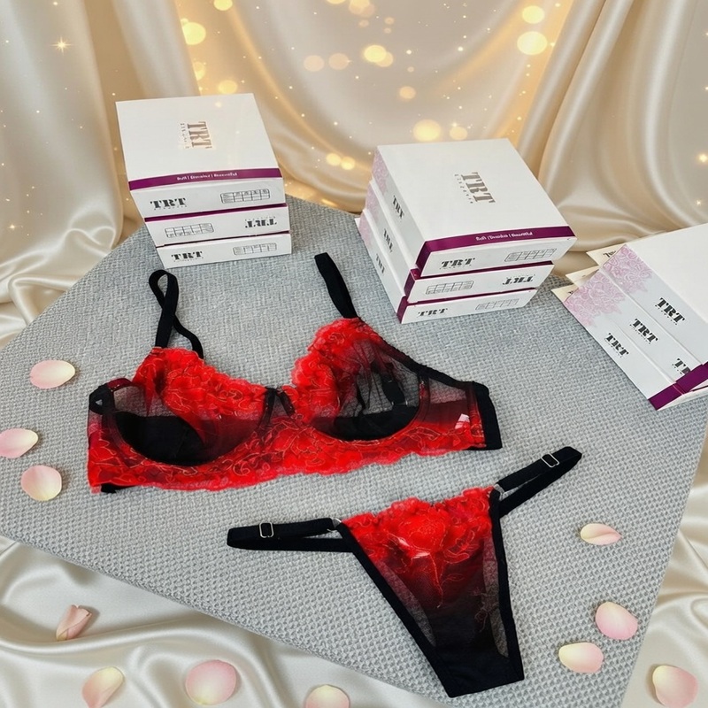 ست لباس زیر عمده گلدوزی طرح رز قرمز – برند TRT